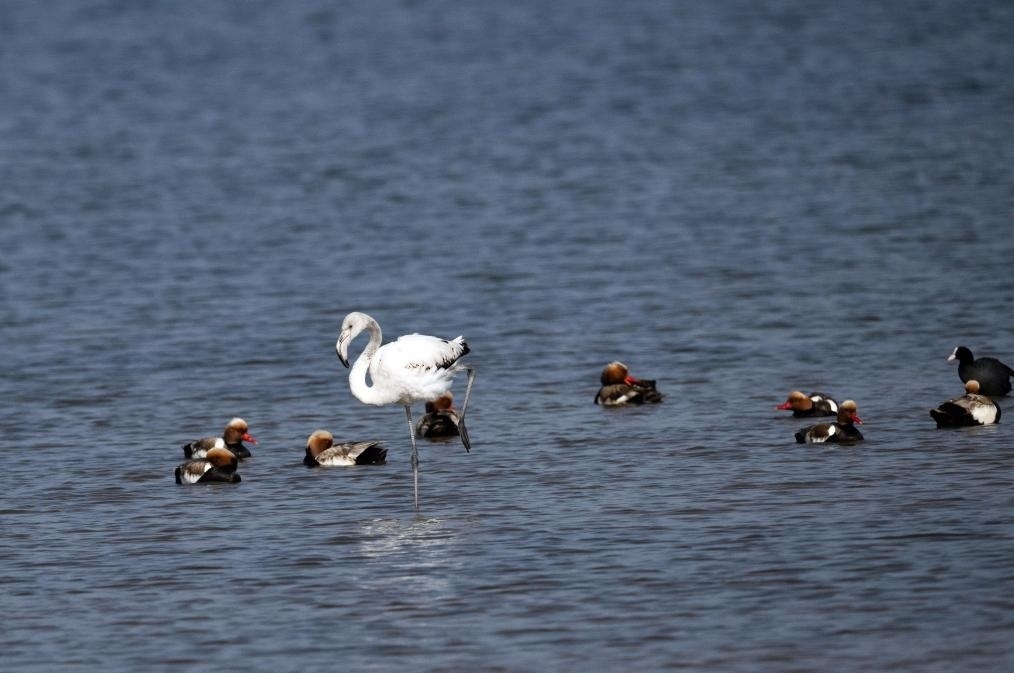 大紅鸛又稱大火烈鳥,主要生活在鹽水、淡水棲息地,喜歡結(jié)群生活,主要分布于熱帶、亞熱帶地區(qū),已被列入國家保護(hù)的有益的或者有重要經(jīng)濟(jì)、科學(xué)研究價(jià)值的陸生野生動(dòng)物名錄。陳峰說:“大紅鸛在烏梁素海屬于‘迷鳥’,實(shí)屬罕見。我們已安排專人在湖區(qū)周邊實(shí)行重點(diǎn)巡查,防止人類活動(dòng)干擾大紅鸛的棲息,給它營造出適宜、安全的棲息環(huán)境?!?/p>