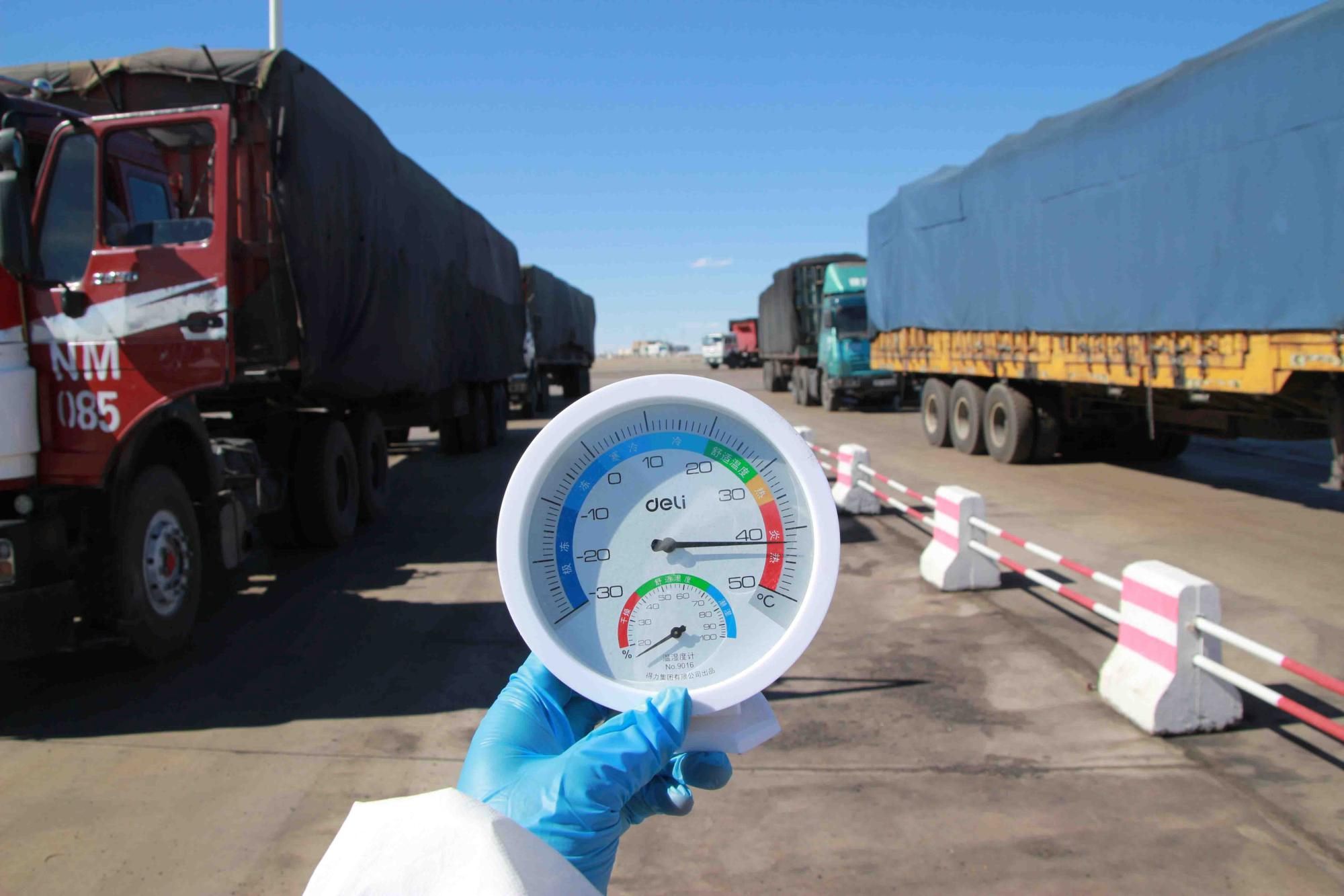 6月11日,內蒙古自治區(qū)阿拉善盟額濟納旗策口岸地氣溫持續(xù)升高,策克口岸距離額濟納旗近70余公里,地處戈壁深處,全年干旱少雨干燥的氣候、持續(xù)增長的氣溫,為抗擊疫情、出入境查驗等工作都帶來了不小的影響。