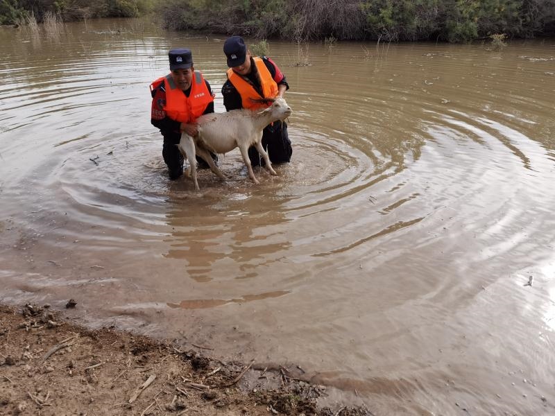 “請(qǐng)民警同志幫幫忙,我的羊群被困在河里了,這可是我的命根子??!”2020年9月8日8時(shí)許,蘇泊淖爾邊境派出所一個(gè)報(bào)警電話打破了清晨的寧?kù)o,來(lái)電的是內(nèi)蒙古額濟(jì)納旗蘇泊淖爾蘇木牧民布某。原來(lái),夜里黑河漲水,他家的幾十只羊被困,望著身陷險(xiǎn)境的羊群,焦急的布某打通了派出所的報(bào)警電話。
