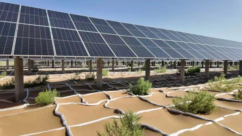 在內蒙古華電騰格里清潔能源外送基地,建成的200萬千瓦光伏項目正將清潔能源輸送入網(wǎng)。該項目因地制宜采用“光伏+治沙”的形式,通過板上發(fā)電、板下修復、板間種植,在治理沙地的同時促進節(jié)能降耗,實現(xiàn)生態(tài)、經(jīng)濟效益的有機統(tǒng)一。