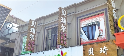 當(dāng)日,記者來到貝琦爾兒童攝影會(huì)館,該店招牌還未摘掉,但店門已經(jīng)上鎖。從外向里看去,屋內(nèi)擺滿了零亂的雜物,店門前則貼著一張出租告示。