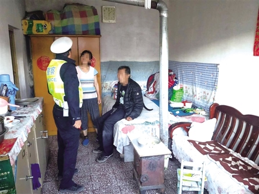 民警將男子送回家(圖片由青山區(qū)交管大隊第四警務區(qū)提供)