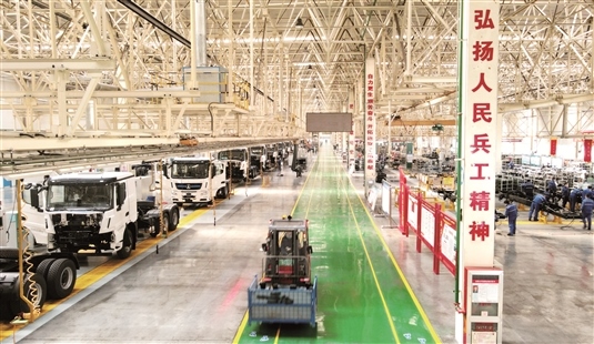 “爆單了!”負責電池裝配的一線技術工人劉強內心為之振奮??粗矍斑@條700米長的底盤生產線上,每8分鐘就有一臺新能源重卡下線,他和工友們信心滿滿,干勁十足。