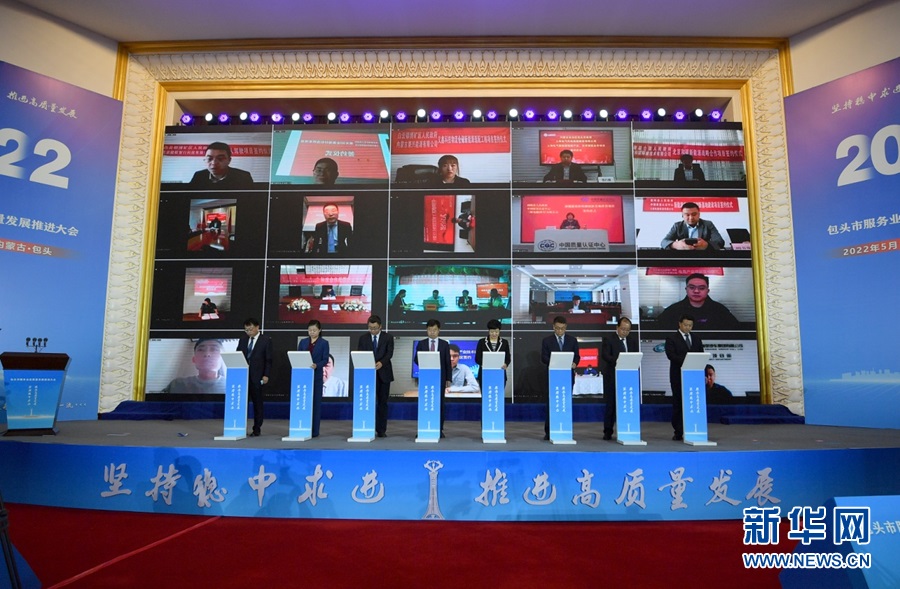 5月10日,包頭市服務業(yè)高質量發(fā)展推進大會網(wǎng)絡簽約儀式。新華網(wǎng)發(fā)(安吉斯 攝)