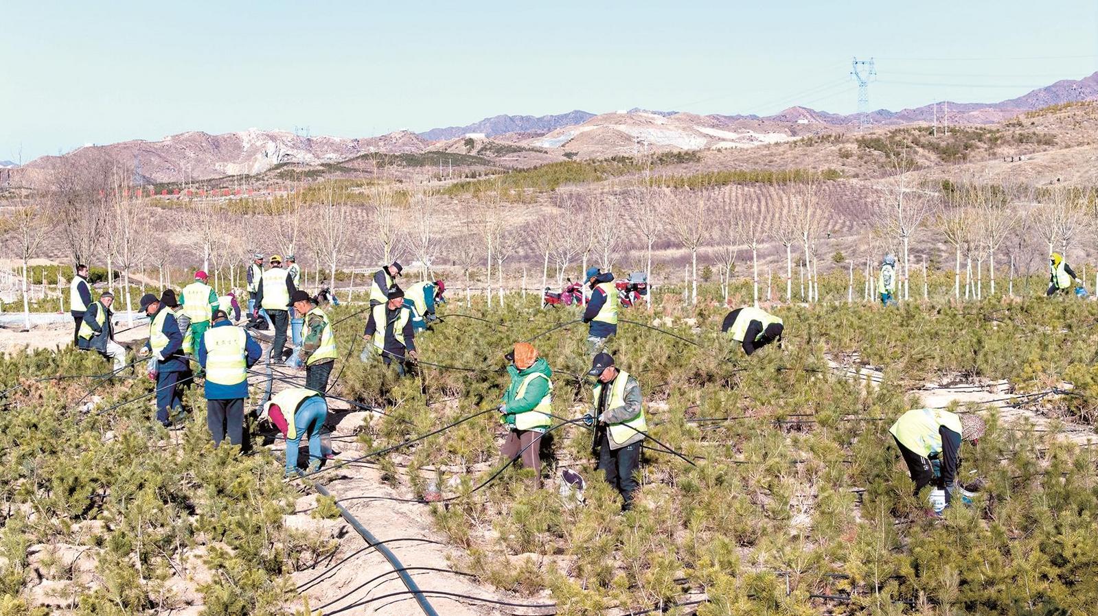 由東到西,從南向北,青苗綻翠,新綠生根。放眼包頭“三北”工程各旗縣區(qū)生態(tài)建設(shè)現(xiàn)場(chǎng),處處呈現(xiàn)出一片熱火朝天的繁忙景象。苗木搬運(yùn)、打孔、樹苗栽種、填土圍堰、澆水,人力與機(jī)械互相協(xié)作,科技與創(chuàng)新相得益彰。