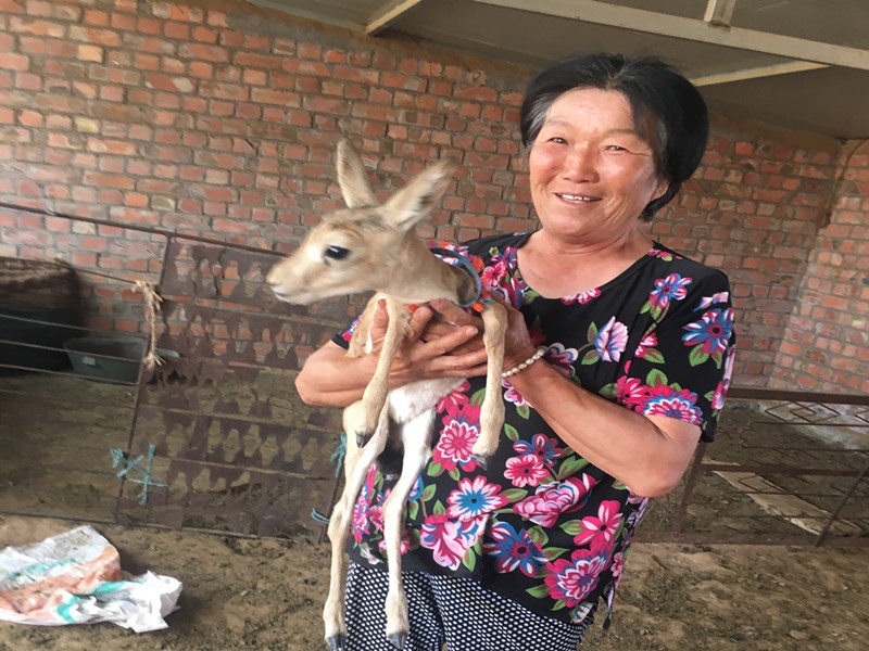 7月9日,甘其毛都邊境派出所民警與護(hù)邊員寶日夫在開展日常巡邊工作途中,發(fā)現(xiàn)一只受傷的黃羊幼崽伏在地上瑟瑟發(fā)抖。經(jīng)檢查,這只小黃羊年齡約為4個月,左后肢疑似扭傷,無法正常行走,身體也極為虛弱。民警立即將小黃羊帶到護(hù)邊員寶日夫家中包扎救治。寶日夫夫婦還為小黃羊做了一個項圈掛在脖子上,希望它盡快痊愈,茁壯成長。