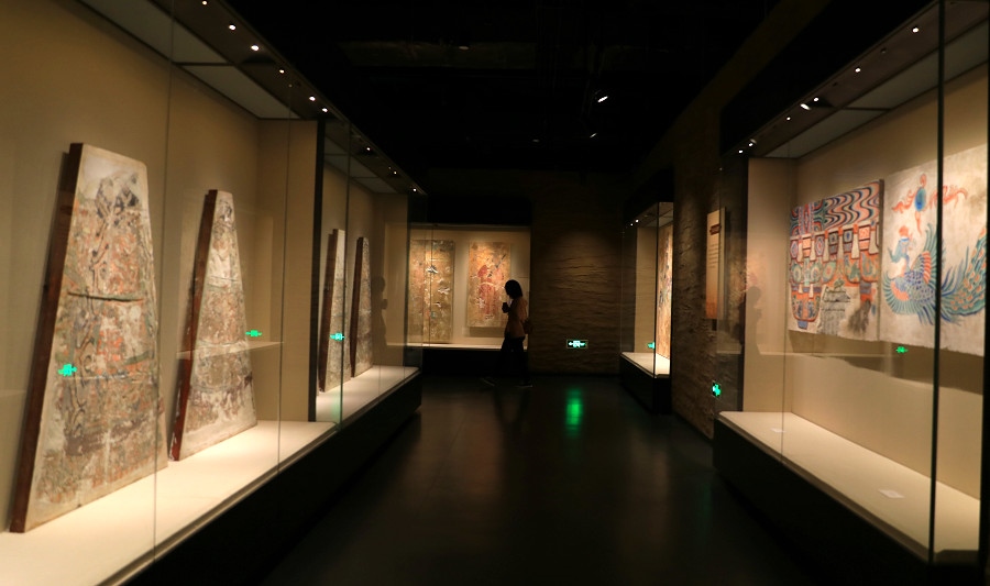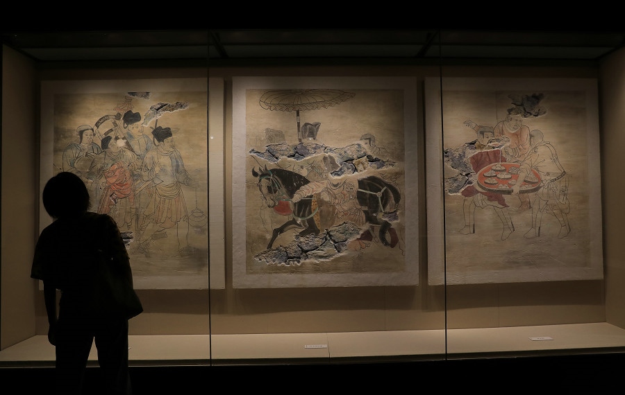 游人在館內(nèi)參觀契丹墓葬壁畫(huà)