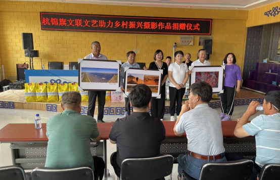 活動(dòng)期間,文聯(lián)主席王春梅說,杭錦旗文聯(lián)始終響應(yīng)黨中央及各級(jí)黨委的號(hào)召,非常重視鄉(xiāng)村文化振興,做好文化下鄉(xiāng)工作,推進(jìn)農(nóng)牧區(qū)域的文化建設(shè),尤其是遇到今年遇到嚴(yán)重旱情時(shí)期,杭錦旗文聯(lián)組織了攝影藝術(shù)家們拍攝了30幅經(jīng)典作品,捐給希日摩仁嘎查及村民,緩解精神壓力,協(xié)助渡過難關(guān)。