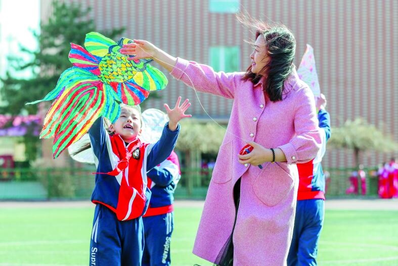 3月29日,呼和浩特市南門外小學(xué)的學(xué)生在老師指導(dǎo)下放飛自己制作的風(fēng)箏。隨著天氣轉(zhuǎn)暖,該校開展了形式多樣的社會(huì)實(shí)踐課,培養(yǎng)學(xué)生動(dòng)手、動(dòng)腦能力,豐富學(xué)生的課余活動(dòng)。