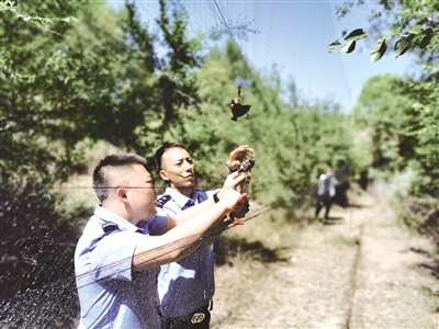 民警在周邊偵查,尚未發(fā)現(xiàn)可疑實(shí)施人員,民警及時(shí)對(duì)網(wǎng)上受困的野鳥(niǎo)進(jìn)行了解救和放飛,并對(duì)該處粘鳥(niǎo)網(wǎng)進(jìn)行了拆除、銷毀。