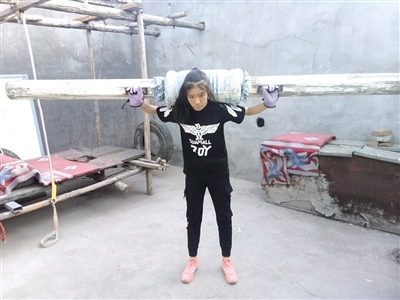 用工地上撿來(lái)的木頭樁和繩子制作的簡(jiǎn)易牽引機(jī),加了墊子的木凳做跳躍訓(xùn)練,用木頭和海綿做的啞鈴……走進(jìn)呼和浩特市土默特左旗察素齊鎮(zhèn)鄭國(guó)花的家里,由父親耗時(shí)半個(gè)月打造的簡(jiǎn)易健身房就是鄭國(guó)花每天訓(xùn)練體能的地方。鄭國(guó)花在土默特左旗第一中學(xué)高一就讀,每天凌晨4點(diǎn)多,父女二人就準(zhǔn)時(shí)出現(xiàn)在察素齊鎮(zhèn)街頭的柏油路和體育場(chǎng)里。從小學(xué)六年級(jí)到高一,訓(xùn)練從不懈怠,一堅(jiān)持就是5年?!捌鋵?shí)最初讓孩子練習(xí)中長(zhǎng)跑,主要是為了鍛煉孩子的身體。女兒4個(gè)月大的時(shí)候,她媽媽就離開(kāi)了,我一直又當(dāng)?shù)之?dāng)媽把她拉扯大,但這娃娃身體一直不好,不怎么吃飯,身體十分瘦弱,直到上小學(xué)六年級(jí)的時(shí)候,連一碗飯都吃不進(jìn)去。我一看再這么下去身體指定是要垮掉的,就想著讓她練習(xí)跑步,能多吃點(diǎn)飯。因?yàn)槲沂擒娙顺錾?,以前也是運(yùn)動(dòng)員,和女兒商量后,她也同意了,我們就開(kāi)始跑步。第一個(gè)月,她還追不上我,但飯量確實(shí)見(jiàn)長(zhǎng),到了第二個(gè)月,我就追不上她了,我開(kāi)始騎著自行車(chē)陪她跑,再后來(lái)自行車(chē)追不上了,我就騎了一輛三輪車(chē),三輪車(chē)也不行了,干脆買(mǎi)了一輛摩托車(chē),這么多年從沒(méi)間斷過(guò)。”7月19日,鄭龍?jiān)诮邮苡浾卟稍L時(shí)表示,對(duì)于女兒,她最大的希望是女兒健健康康的,以后能進(jìn)入北京體育大學(xué),將來(lái)能進(jìn)入國(guó)家隊(duì),為國(guó)爭(zhēng)光。