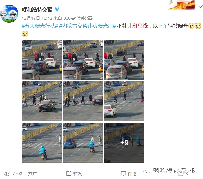 為實現(xiàn)斑馬線交通安全“三提升一下降”(機動車禮讓斑馬線和行人、非機動車守法意識明顯提升,輿論宣傳倡導(dǎo)“機動車禮讓斑馬線”的深度與廣度不斷提升,群眾對城市交通管理的滿意度顯著提升;因不禮讓斑馬線導(dǎo)致人員傷亡的交通事故發(fā)案率大幅下降)的目標(biāo),按照交管支隊關(guān)于開展集中整治機動車不禮讓斑馬線行動方案的統(tǒng)一部署,支隊指揮中心運用高科技手段,利用高清視頻探頭抓拍機動車不禮讓斑馬線等交通違法行為,并錄入道路交通管理綜合應(yīng)用平臺。自2020年12月12日至12月31日,利用大屏監(jiān)控設(shè)備抓拍260條,錄入系統(tǒng)并予以曝光。