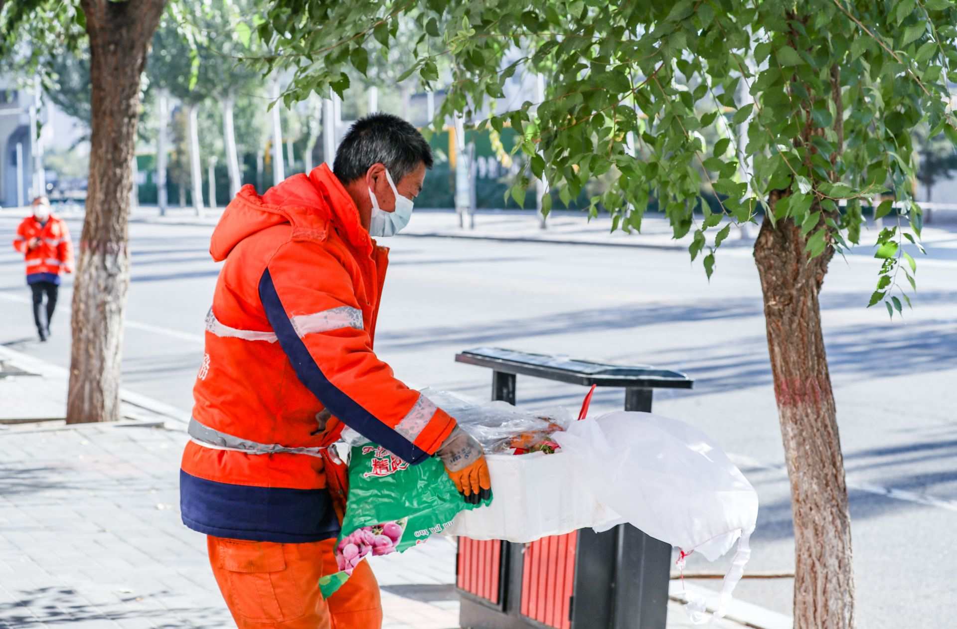 10月18日,呼和浩特市賽罕區(qū)環(huán)衛(wèi)工作人員正在進(jìn)行清掃清理工作。為切實(shí)做好疫情防控期間呼和浩特市生活垃圾清運(yùn)工作,讓城市清潔無(wú)死角,環(huán)衛(wèi)部門工作人員堅(jiān)守在城市街頭、社區(qū)等工作崗位,在做好自身防護(hù)的同時(shí),維護(hù)著城市的清潔環(huán)境。攝影/草原全媒·正北方網(wǎng)首席記者 牛天甲
