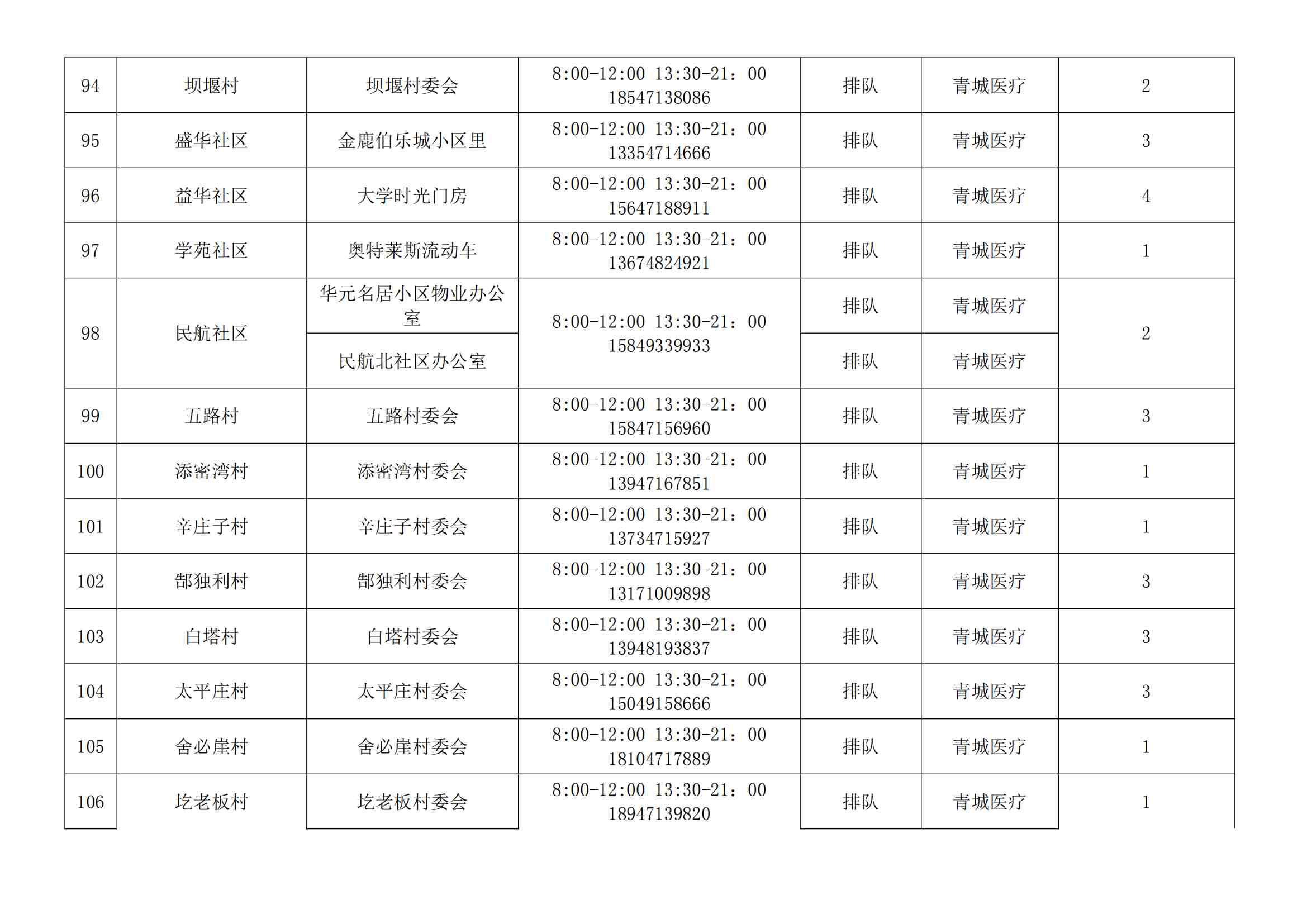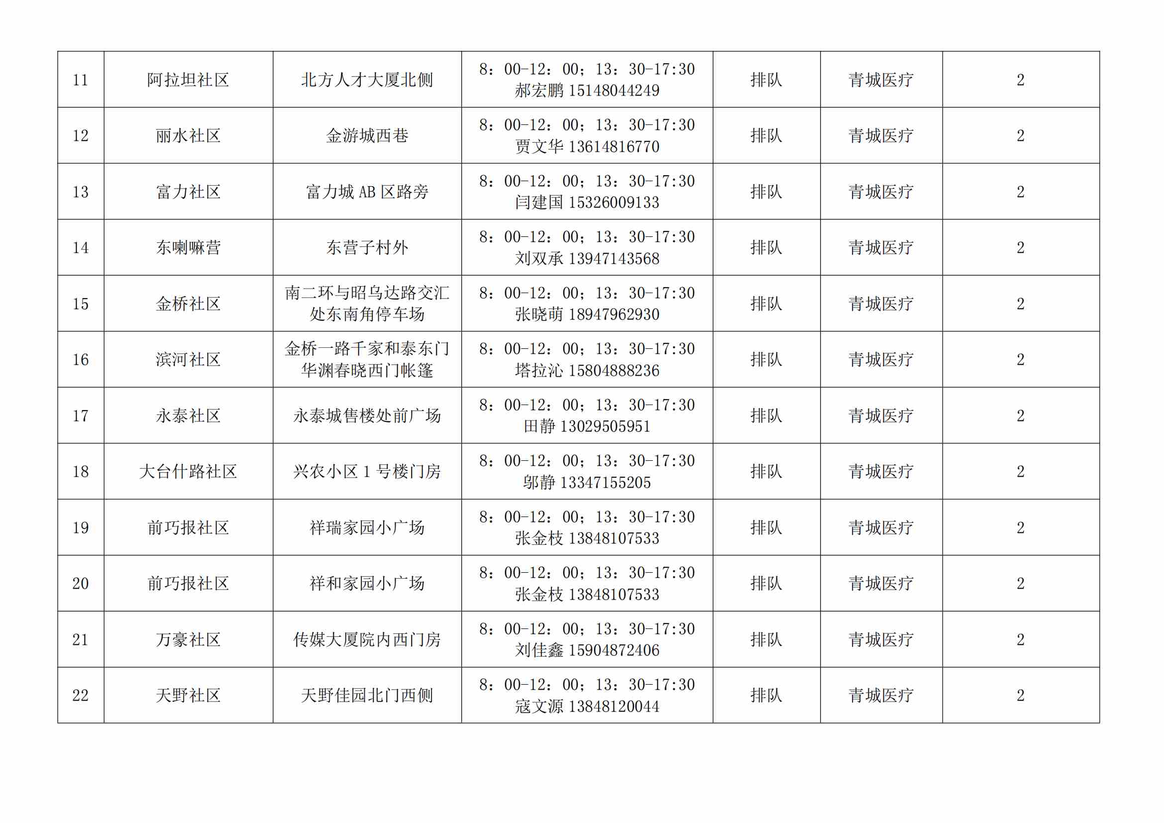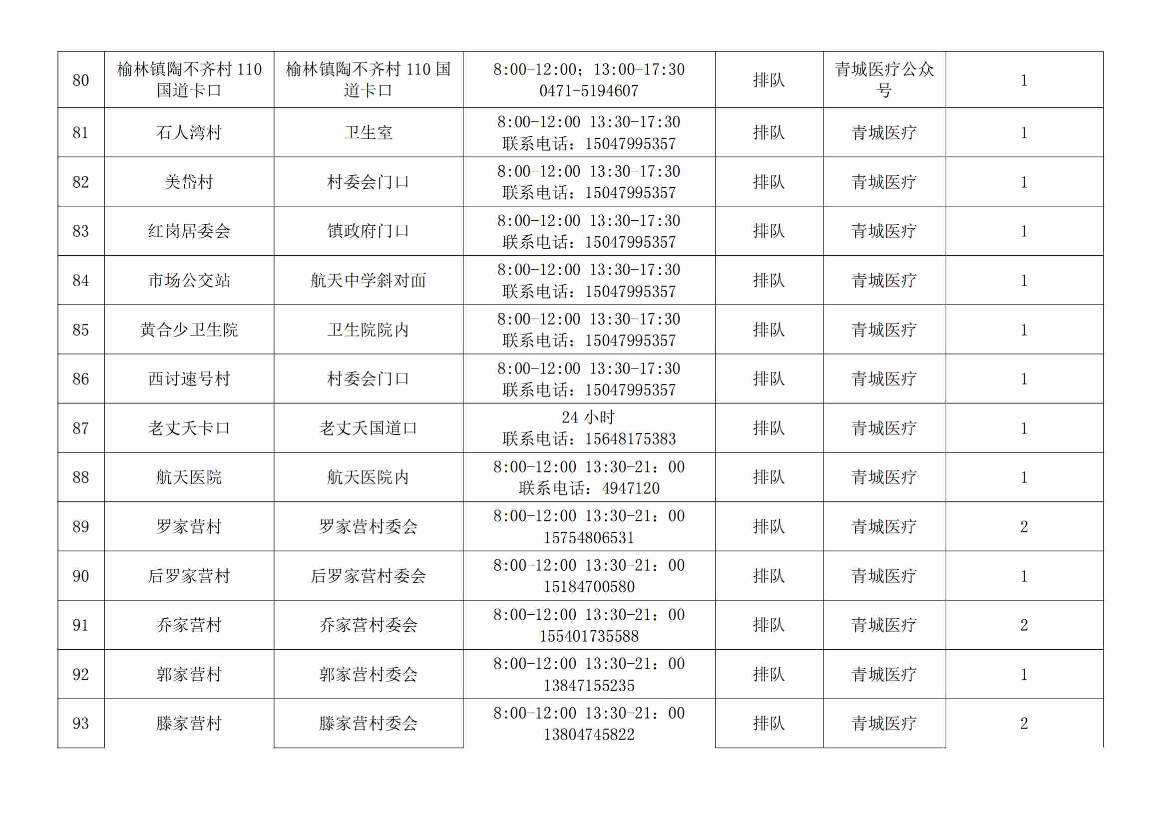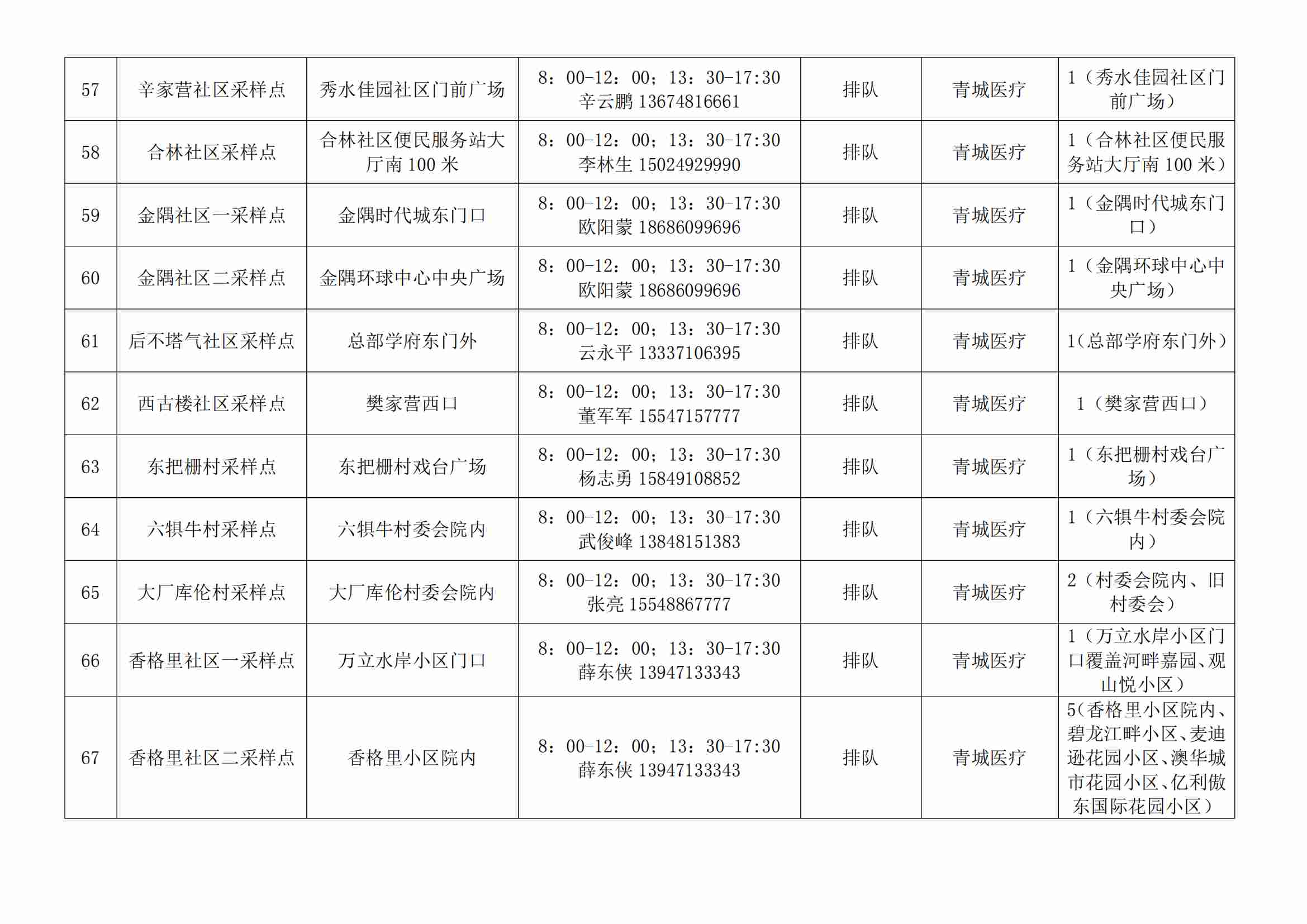 根據(jù)全市核酸檢測(cè)政策的調(diào)整,為滿(mǎn)足市民就醫(yī)、出行、工作等核酸檢測(cè)需求,賽罕區(qū)開(kāi)放160個(gè)便民核酸采樣點(diǎn)(詳見(jiàn)附表),廣大市民可就近選擇,核酸結(jié)果從青城碼查詢(xún)。