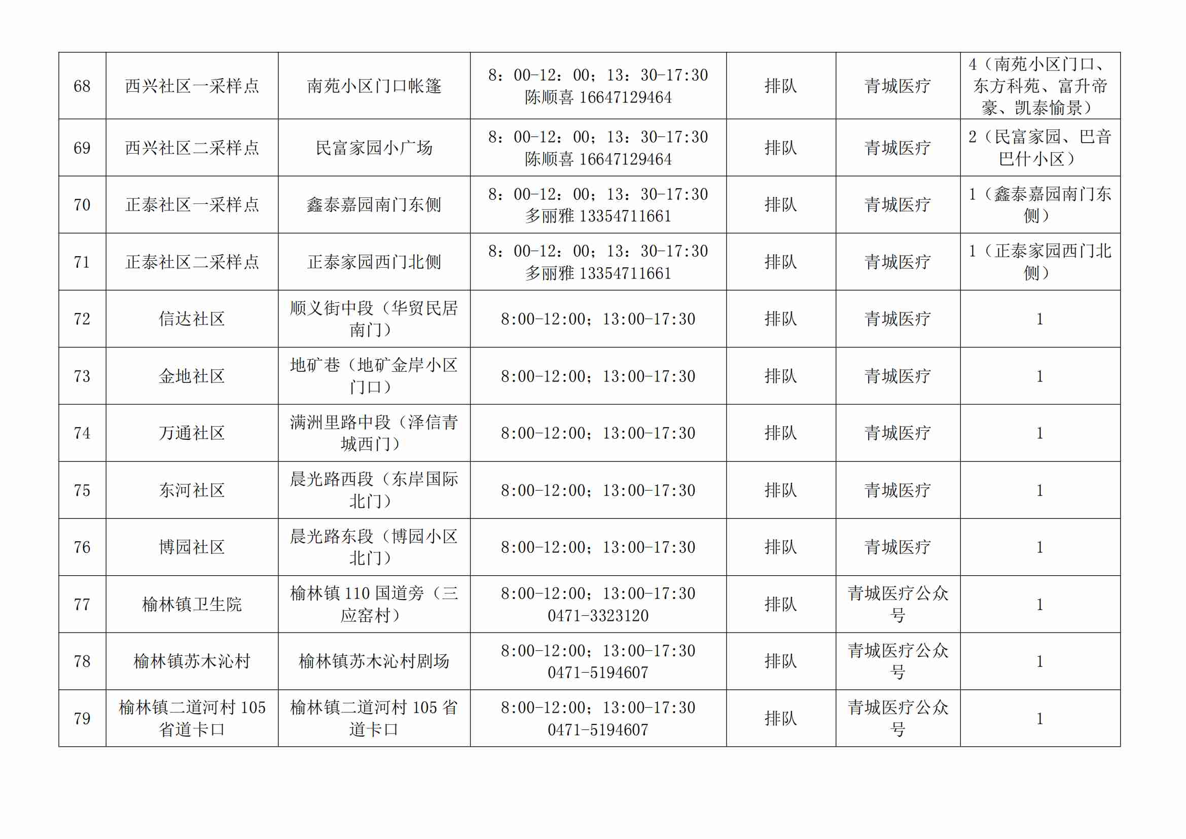 賽罕區(qū)常態(tài)化核酸檢測(cè)便民采樣點(diǎn)公示