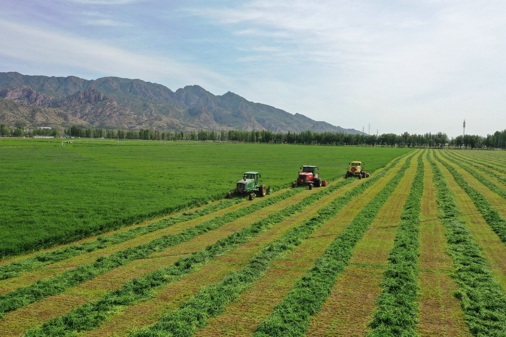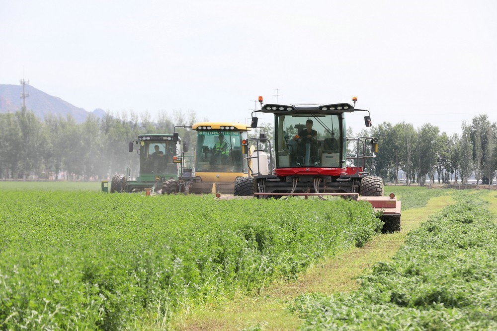 6月4日上午,位于敕勒川生態(tài)綠廊內(nèi)的呼和浩特市土默特左旗國家農(nóng)業(yè)示范區(qū)(兵州亥)苜蓿基地3200畝紫花苜蓿頭茬開鐮收割。