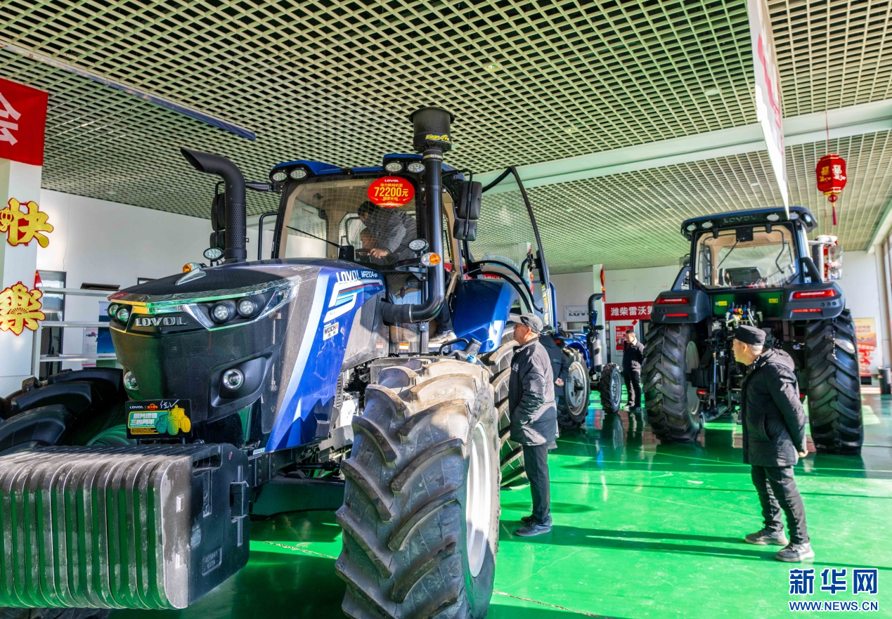 ??2月18日,在位于呼和浩特市玉泉區(qū)的一家農(nóng)機(jī)設(shè)備公司展銷大廳,農(nóng)戶在咨詢選購國家補(bǔ)貼拖拉機(jī)。新華網(wǎng)發(fā)(丁根厚 攝)