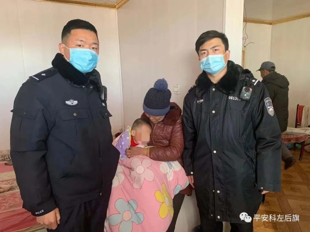 此時(shí)氣溫達(dá)零下14度,距離孩子失蹤已經(jīng)過去一個(gè)半小時(shí),民警立即詢問孩子姓名、體貌特征、所穿服裝并索要照片后向平安巴胡塔七級(jí)微信群推送孩子失蹤信息,發(fā)動(dòng)協(xié)警、村干及群眾力量共同開展尋人工作,經(jīng)過半小時(shí)的努力,終于在離村子3公里處的坨子坡上發(fā)現(xiàn)了睡眠中已經(jīng)凍得發(fā)紫的孩子,民警包曉亮立即脫下自己的外套給孩子穿上并將其送回家中。經(jīng)了解,孩子自己跑出家玩迷了路,由于又冷又累就睡著了。