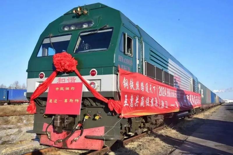 滿載55個(gè)集裝箱貨物的中歐班列從通遼駛向莫斯科。圖片來(lái)源通遼市融媒體中心微信公眾號(hào)