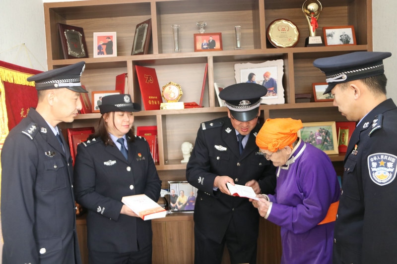 5月6日上午,民警們手捧鮮花來到都貴瑪老人家。一進家門,便為都貴瑪老人送上了節(jié)日的祝福。民警們與都貴瑪老人嘮起了家常,詳細詢問老人的身體狀況和生活情況。大家你一言,我一語,聊著聊著,就談到了當前開展的黨史學(xué)習(xí)教育。民警們把自己的學(xué)習(xí)體會和收獲一一向都貴瑪老人作了匯報。都貴瑪老人說,自己也通過觀看《新聞聯(lián)播》了解到國家十四五開局之年和全黨開展黨史學(xué)習(xí)教育的相關(guān)內(nèi)容。特別是看到民警們帶來的黨史書籍時,都貴瑪老人和大家講述了他們那一代人如何利用蒙文版書籍學(xué)習(xí)黨章黨史的故事,再次回顧了習(xí)近平總書記為她授予“人民楷?!眹覙s譽稱號獎?wù)聲r的自豪和激動。