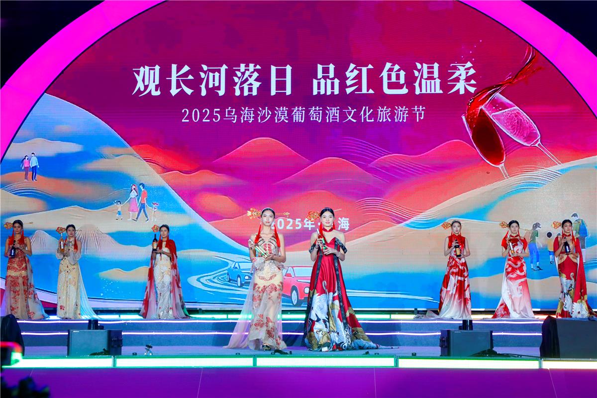 9月13日晚,2025烏海沙漠葡萄酒文化旅游節(jié)開(kāi)幕式現(xiàn)場(chǎng)。