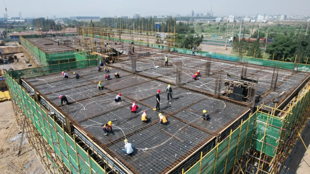 “目前,項(xiàng)目正在進(jìn)行基礎(chǔ)設(shè)施施工,辦公樓已完成1層封頂,1號(hào)車間正在進(jìn)行主體結(jié)構(gòu)的鋼管架的搭設(shè)和模板制作,外網(wǎng)工程和2號(hào)、3號(hào)車間基礎(chǔ)施工也在順利推進(jìn)?!表?xiàng)目施工單位負(fù)責(zé)人王秀山告訴記者,該項(xiàng)目計(jì)劃今年8月底完成辦公樓、綜合服務(wù)樓主體施工,9月中旬完成3個(gè)車間主體施工。