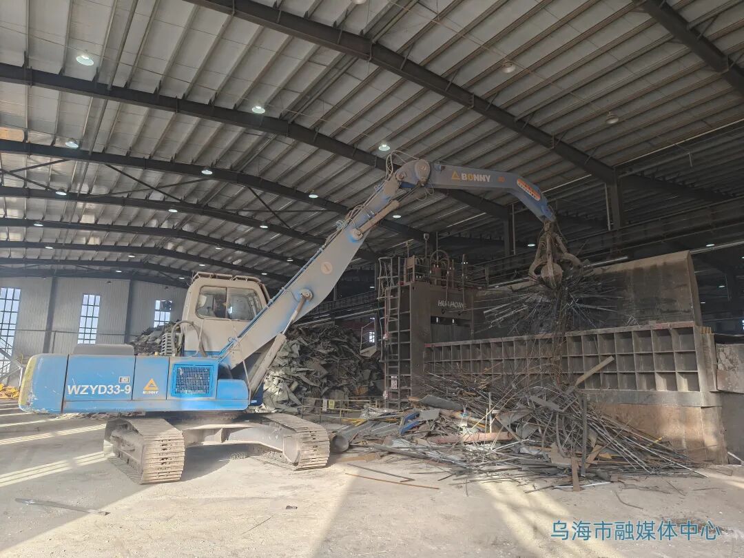 近日,記者來(lái)到位于烏海海勃灣高新技術(shù)產(chǎn)業(yè)開(kāi)發(fā)區(qū)的內(nèi)蒙古萬(wàn)斯通環(huán)保再生資源回收有限公司,走進(jìn)廢鋼車間,龍門(mén)剪、抓鋼機(jī)、電磁起重機(jī)等交叉作業(yè),機(jī)械轟鳴聲與金屬撞擊聲、破碎聲不絕于耳。