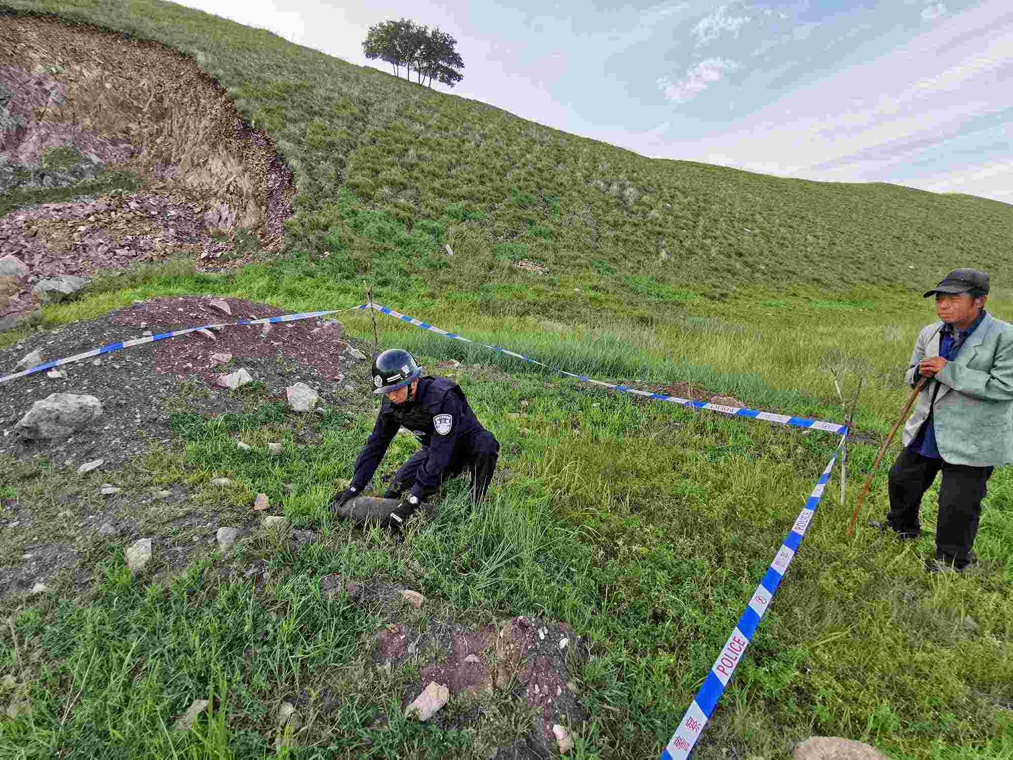 8月18日10時(shí),阿爾山邊境派出所接到轄區(qū)群眾報(bào)警稱:在阿爾山市某山上發(fā)現(xiàn)疑似炮彈的金屬物體。民警迅速趕往指定地點(diǎn),劃定警戒區(qū)、封鎖出入通道,在現(xiàn)場(chǎng)很快發(fā)現(xiàn)了長(zhǎng)約30厘米不等的3枚廢舊炮彈,經(jīng)初步勘驗(yàn),該炮彈系日軍侵華時(shí)期遺留,引信已經(jīng)損壞,但內(nèi)部裝置完好,受到劇烈撞擊仍有爆炸可能。8月19日14時(shí),科右前旗綠水邊境派出所民警下鄉(xiāng)走訪期間,根據(jù)羊倌反映,在一處放牧包附近挖出2枚20厘米不等的廢舊炮彈和1枚手雷,炮彈的鐵質(zhì)外殼雖已生銹,但引信完好,輪廓清晰,若有牲畜踩踏仍有可能發(fā)生爆炸,具有較大的殺傷力。為徹查隱患,民警將炮彈轉(zhuǎn)至安全地帶后,對(duì)附近區(qū)域進(jìn)行了全方位排查搜索,未發(fā)現(xiàn)其他安全隱患。