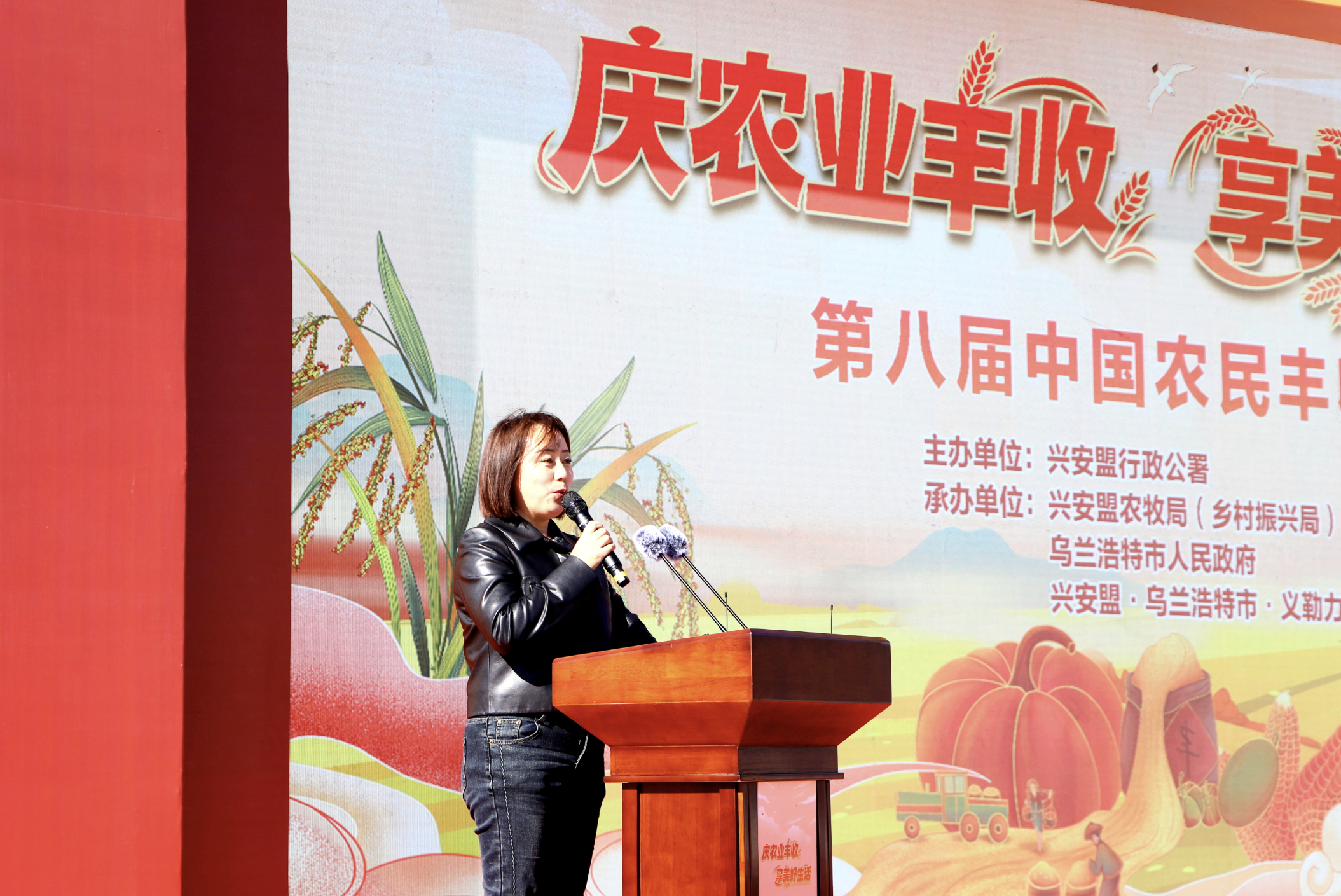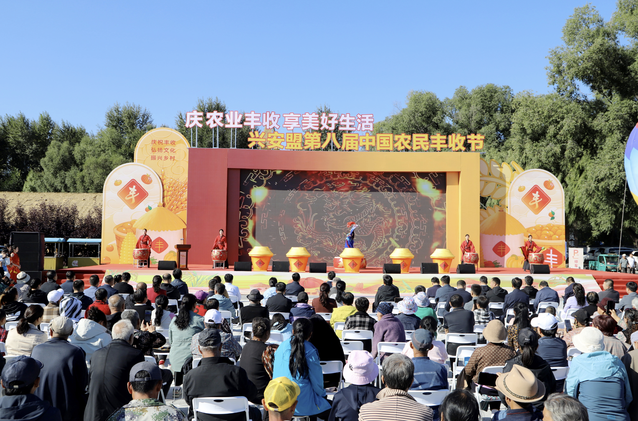 稻浪飄金歌歲稔,果林綴玉頌?zāi)曦S。金秋九月,興安大地稻浪翻滾、瓜果飄香,處處洋溢著豐收的喜悅。9月21日,第八屆“中國農(nóng)民豐收節(jié)”興安盟主會(huì)場活動(dòng)在烏蘭浩特市義勒力特鎮(zhèn)義勒力特嘎查群眾文化生活廣場舉行。農(nóng)牧民朋友歡聚在一起,共慶豐收、共享喜悅、共迎盛會(huì)。