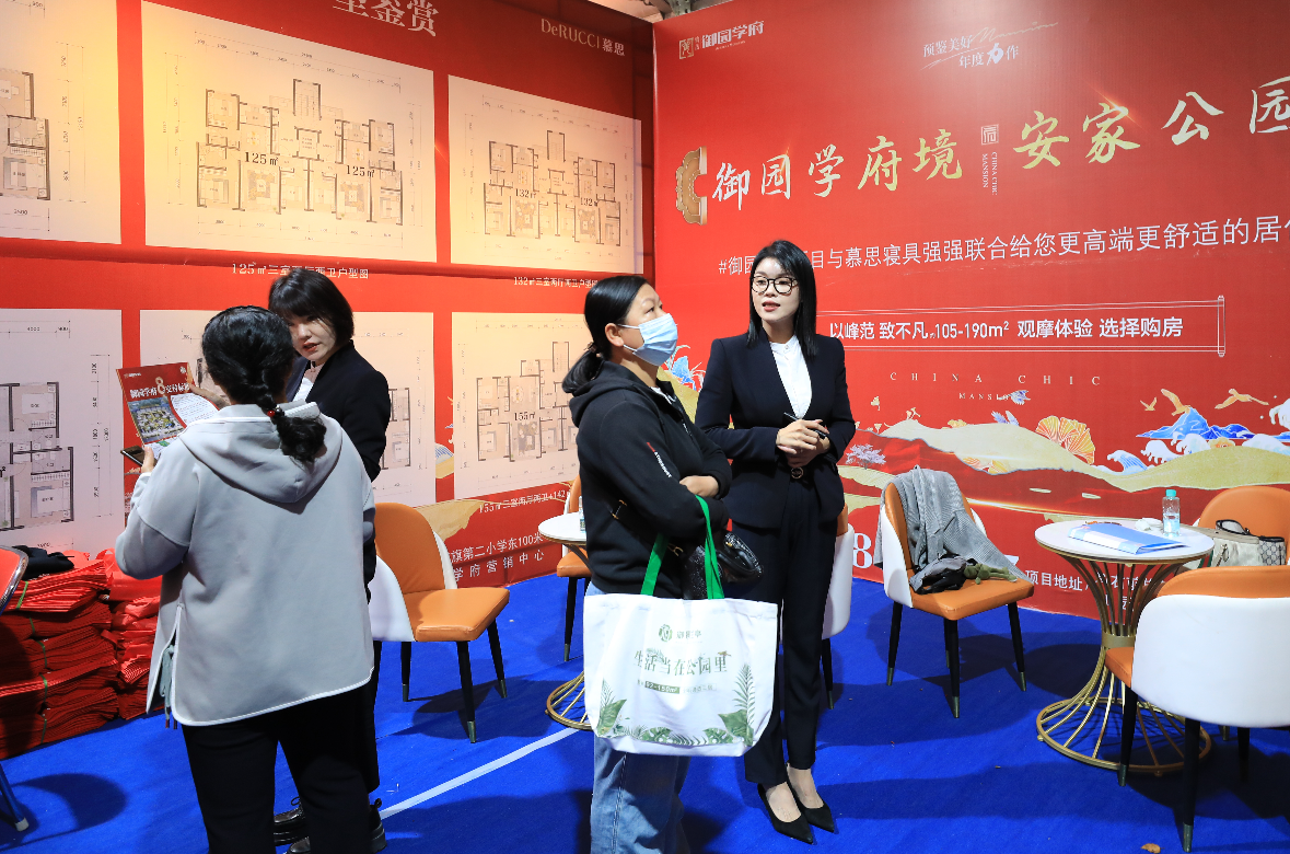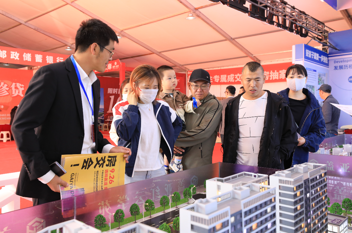 房產(chǎn)銷售人員為市民講解戶型特點