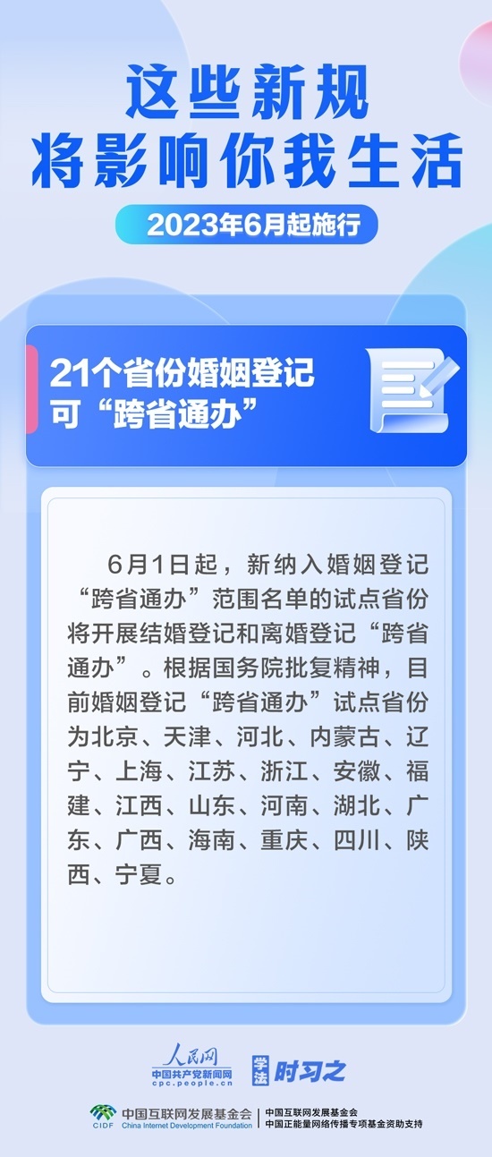 依法從嚴(yán)懲處性侵害未成年人犯罪,21個(gè)省份婚姻登記可“跨省通辦”,規(guī)范個(gè)人信息出境活動……6月,這些新規(guī)施行,將影響你我生活。