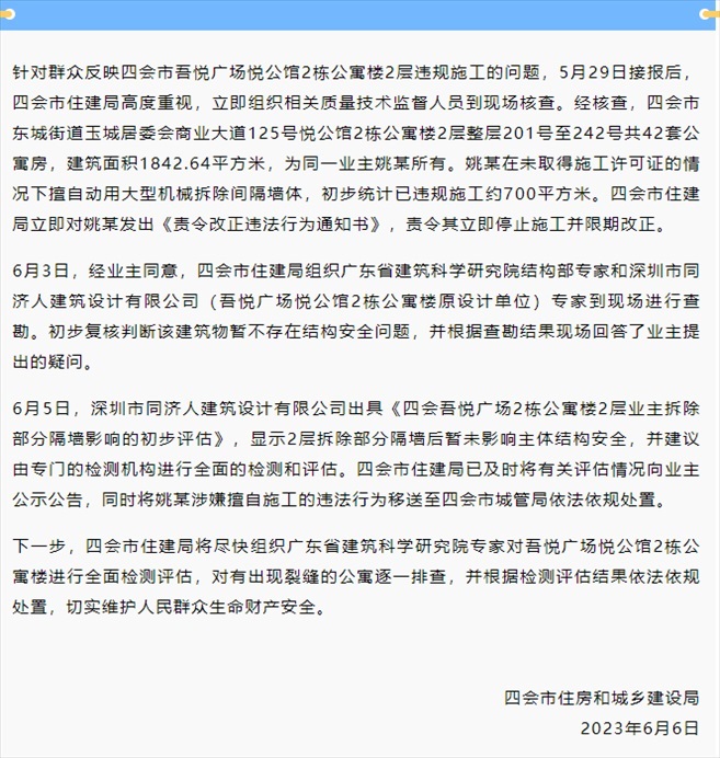·業(yè)主買42套房欲打通全部墻體,當?shù)赝▓螅贺熈钇淞⒓赐V故┕げ⑾奁诟恼?/p>