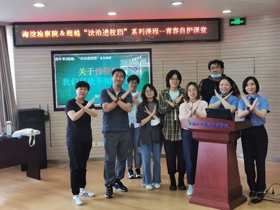 北京市海淀區(qū)人民檢察院與北京超越青少年社工事務(wù)所聯(lián)合開展“法治進(jìn)校園”系列活動,為同學(xué)們講解青春自護(hù)知識。北京超越青少年社工事務(wù)所供圖