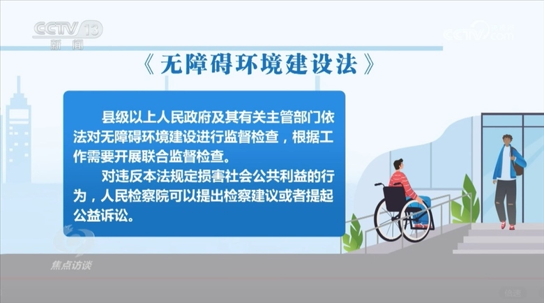 有了設(shè)施建設(shè)標準、劃分了管理維護責任,這還不夠,沒有監(jiān)督,無障礙環(huán)境建設(shè)工作很難持久。在《無障礙環(huán)境建設(shè)法》中,還對“如何保障‘急難愁盼’問題得到解決”進行了規(guī)定。比如縣級以上人民政府及其有關(guān)主管部門依法對無障礙環(huán)境建設(shè)進行監(jiān)督檢查,根據(jù)工作需要開展聯(lián)合監(jiān)督檢查。對違反《無障礙環(huán)境建設(shè)法》規(guī)定損害社會公共利益的行為,人民檢察院可以提出檢察建議或者提起公益訴訟。