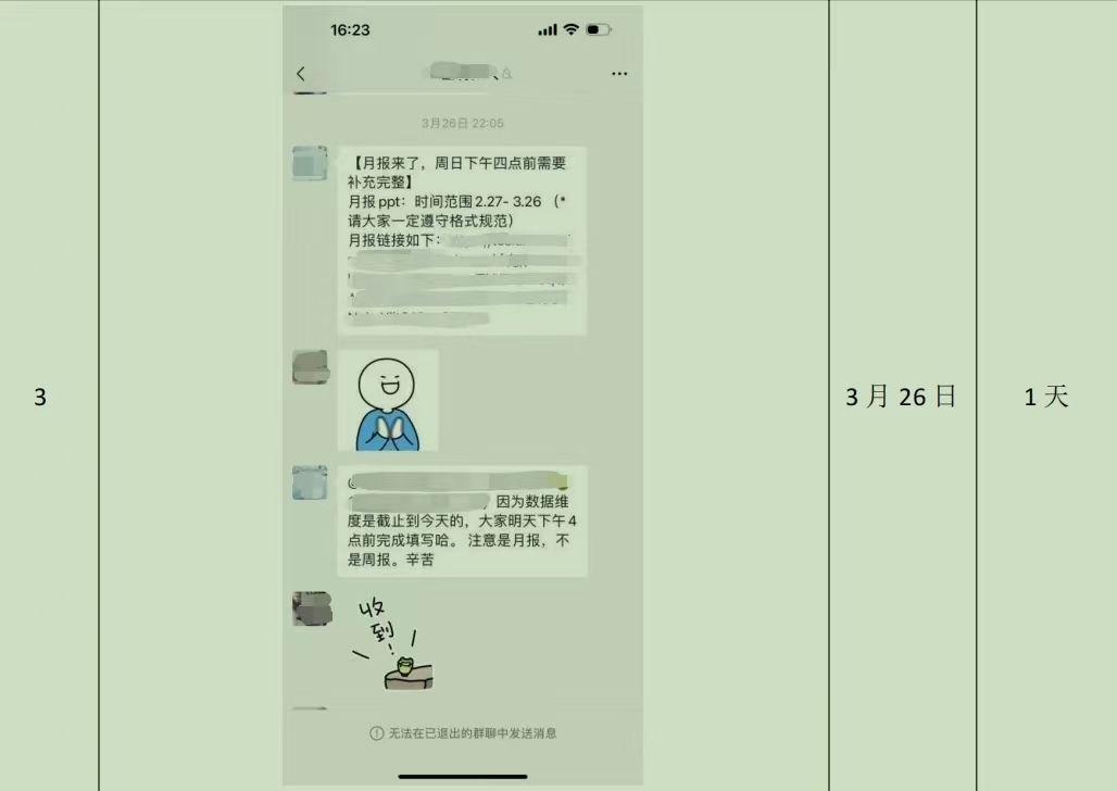 張?bào)以谝凰伤鶎?shí)習(xí),一次工作任務(wù)中,她常在夜晚23點(diǎn)、凌晨1點(diǎn)或5點(diǎn)收到溝通對(duì)象的消息。那項(xiàng)工作是要處理未成年人退款,有一個(gè)家長(zhǎng)不怎么管孩子,事情需要等孩子放學(xué)后處理,張?bào)医o這位家長(zhǎng)發(fā)消息時(shí)常收不到回復(fù)。