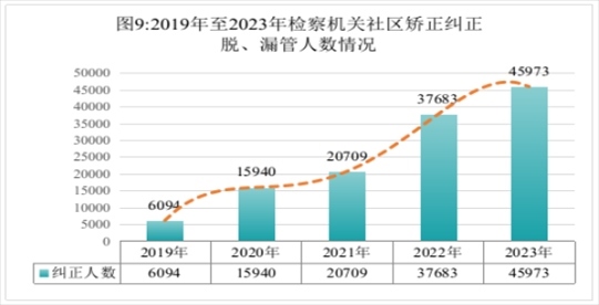 全國(guó)檢察機(jī)關(guān)共對(duì)社區(qū)矯正活動(dòng)不當(dāng)向有關(guān)單位提出糾正意見(jiàn)130315人,同比上升27.7%;已采納130375人,采納率100%(含積存)。糾正社區(qū)矯正對(duì)象脫管、漏管45973人,同比上升22%。共開(kāi)展巡回檢察3955次。通過(guò)巡回檢察發(fā)現(xiàn)問(wèn)題和線索64467個(gè),立案?jìng)刹?42人,巡回檢察與檢察偵查工作協(xié)同推進(jìn)。