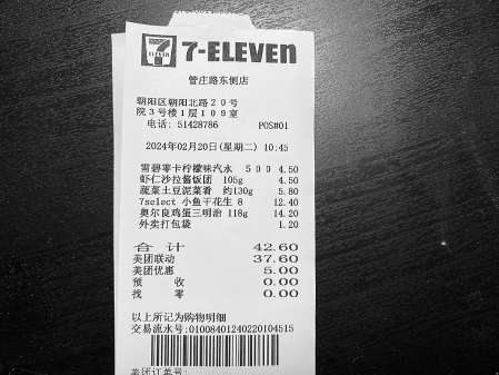 上周,市民李先生通過外賣平臺在711便利店管莊路東側(cè)店下單了5件商品。收到外賣后,李先生發(fā)現(xiàn),商品包裝上的價格與自己下單時的價格不一致?!皧W爾良雞蛋三明治14.2元,而包裝上標注的是13.5元,多收了7毛?!崩钕壬f。