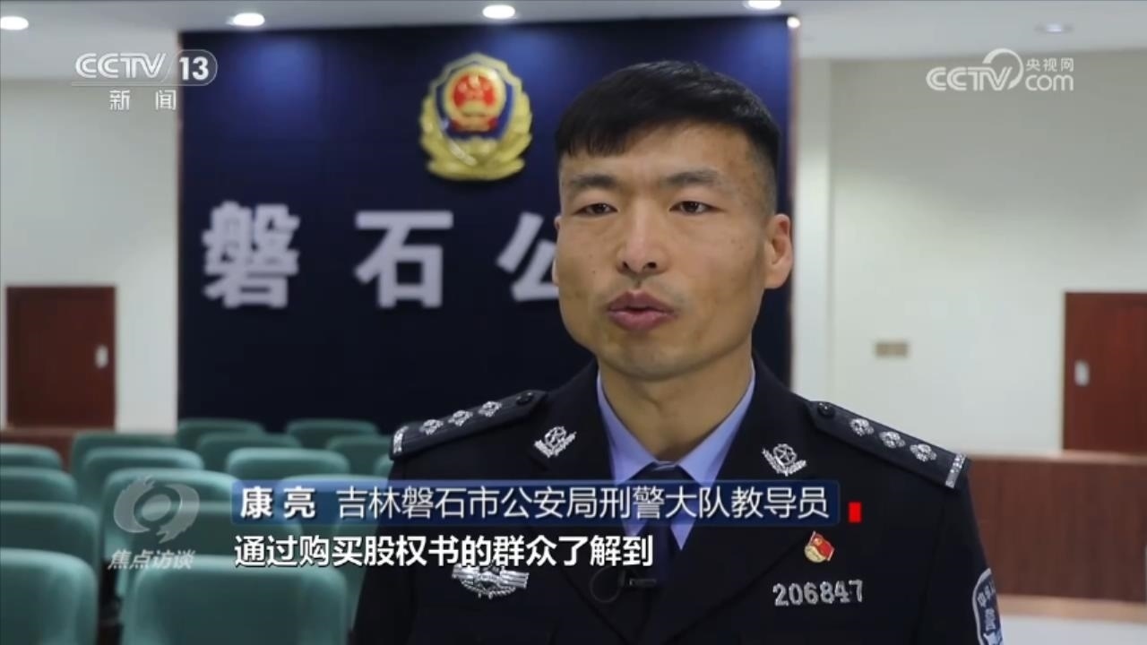吉林磐石市公安局刑警大隊教導員康亮介紹,通過購買股權書的群眾了解到,這是一個投資29.9元就能獲得110萬元回報的項目。