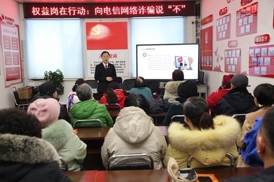 吉林省吉林市船營(yíng)區(qū)人民法院在向陽(yáng)街道北安社區(qū)開展“向電信網(wǎng)絡(luò)詐騙說(shuō)‘不’”普法講座。