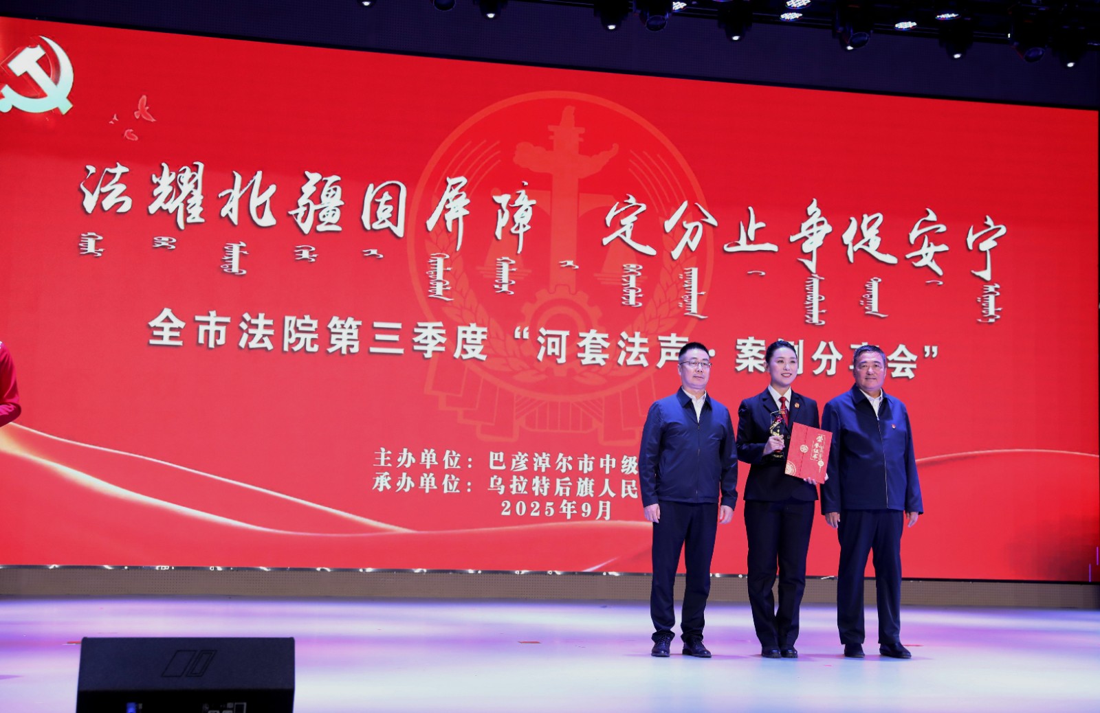 北疆新聞巴彥淖爾9月19日消息 9月19日,由巴彥淖爾市中級(jí)人民法院主辦、烏拉特后旗人民法院承辦的“法耀北疆固屏障,定分止?fàn)幋侔矊帯卑蛷┠谞柺蟹ㄔ旱谌径取昂犹追暋ぐ咐窒頃?huì)”成功舉辦。來自全市法院系統(tǒng)和部分巴彥淖爾市、烏拉特后旗兩級(jí)人大代表、政協(xié)委員及各界群眾等共計(jì)280余人參加了此次分享會(huì)。
