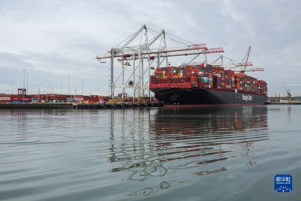 這是11月29日在英國(guó)南安普敦港口拍攝的集裝箱和貨船。