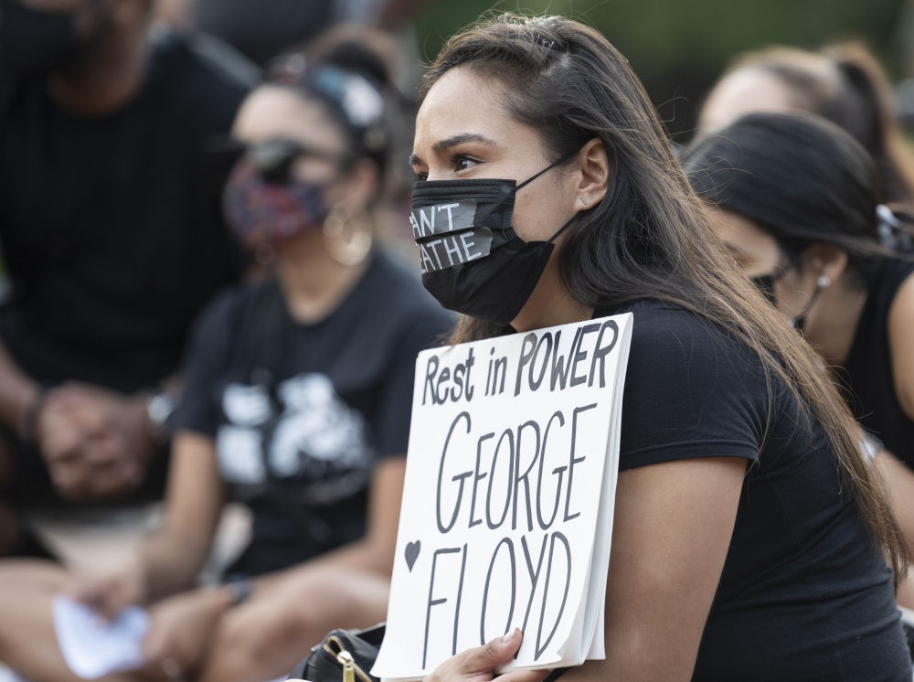 5月25日,人們在美國華盛頓白宮附近參加悼念喬治·弗洛伊德的集會。當日是非洲裔美國人弗洛伊德遭明尼蘇達州白人警察“跪頸”執(zhí)法致死一周年,美國多地舉行悼念活動。新華社記者劉杰攝