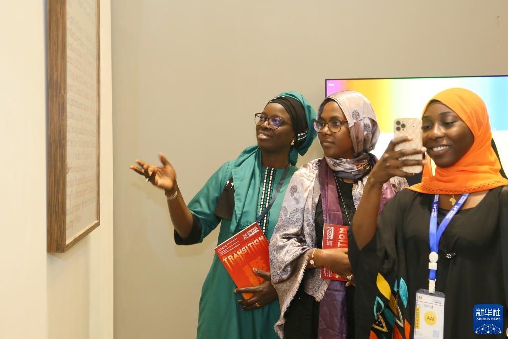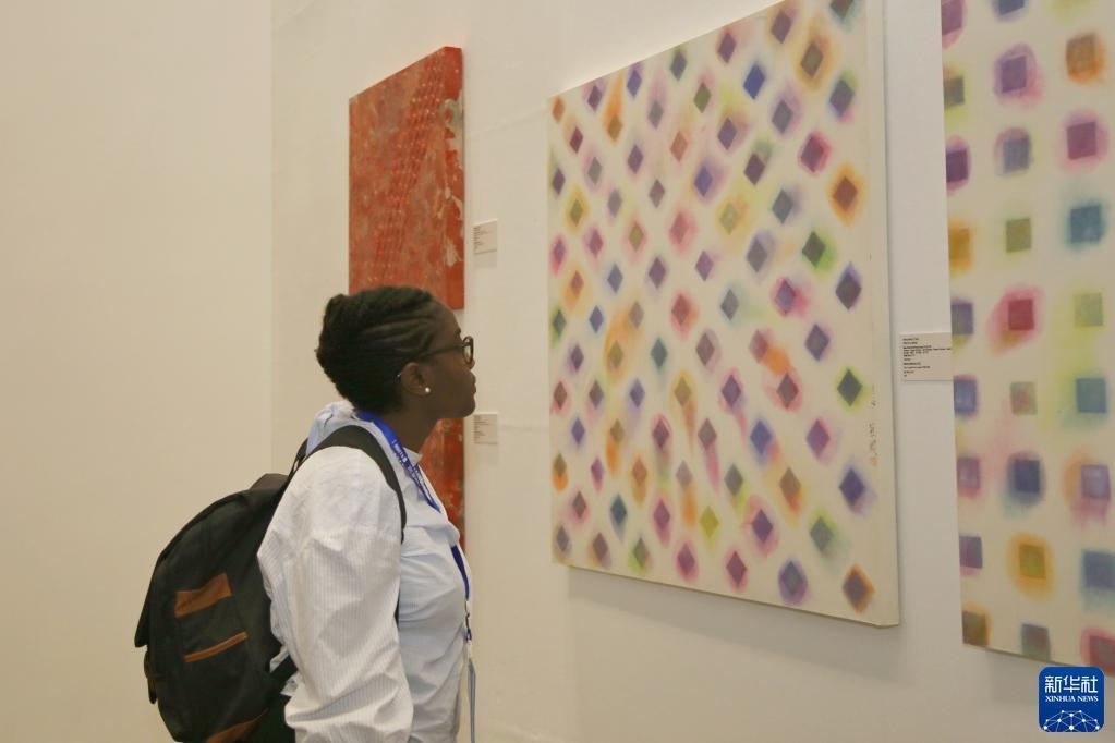 5月19日,觀眾在塞內(nèi)加爾達(dá)喀爾非洲當(dāng)代藝術(shù)雙年展的中國館參觀。新華社記者王子正攝