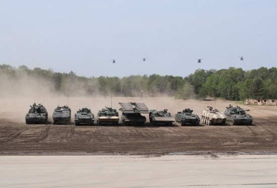2019年5月20日,在德國(guó)蒙斯特,北約快速反應(yīng)部隊(duì)裝甲車及直升機(jī)參與演示。(新華社記者單宇琦攝)