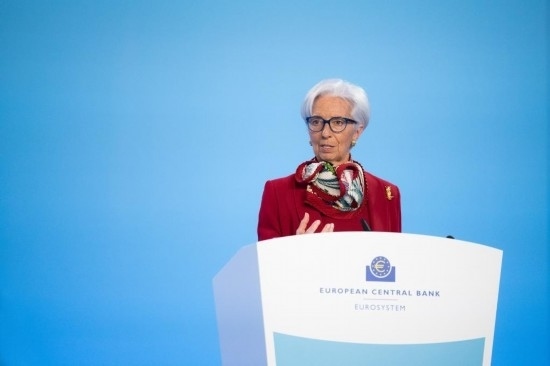 3月16日,歐洲中央銀行行長拉加德在德國法蘭克福歐洲央行總部出席新聞發(fā)布會。新華社發(fā)
