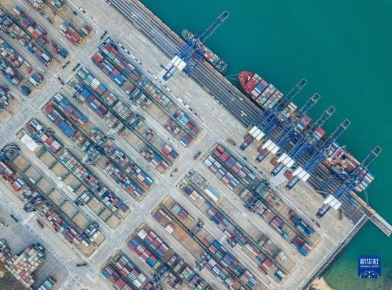 在海南環(huán)新英灣地區(qū)拍攝的洋浦國際集裝箱碼頭(無人機照片,2月28日)。新華社記者 蒲曉旭 攝