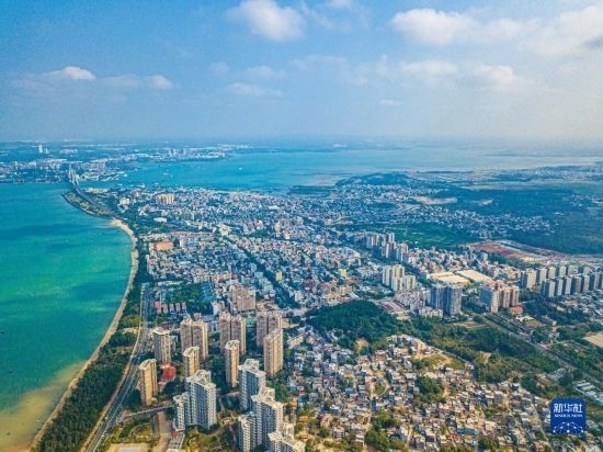 這是海南省洋浦經(jīng)濟開發(fā)區(qū)所在的環(huán)新英灣地區(qū)(無人機照片,2月26日攝)。新華社記者 蒲曉旭 攝