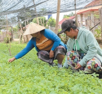 2019年開始,試驗(yàn)站陸續(xù)在老撾各地建立新品種新技術(shù)推廣示范點(diǎn),至今已在全國4個(gè)鄉(xiāng)村建立起技術(shù)推廣示范點(diǎn),指導(dǎo)農(nóng)民進(jìn)行有機(jī)蔬菜、火龍果、水稻種植。金花村位于湄公河支流南俄河邊,曾經(jīng)一到雨季,農(nóng)地就會(huì)被淹。在中方技術(shù)支持下,村民開墾荒地種植蔬菜,累計(jì)種植面積超過500畝?!叭?00多戶,現(xiàn)已有70多戶種植蔬菜,試驗(yàn)站提供優(yōu)質(zhì)種子、傳授種植技術(shù)和防治病蟲害方法,投入少、產(chǎn)量高,讓這里成了首都郊外的蔬菜基地。隨著收入不斷增加,不少村民蓋了新房子、買了汽車,日子越過越紅火?!贝彘L蘇里貢說。