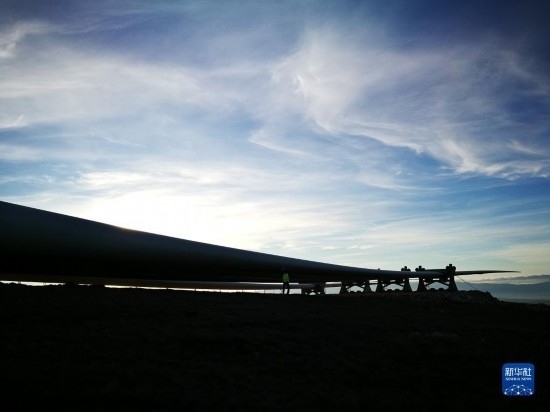 這張未標(biāo)注時(shí)間的照片拍攝的是波黑伊沃維克風(fēng)電場施工現(xiàn)場的風(fēng)電葉片(手機(jī)照片)。新華社發(fā)(王馳攝)