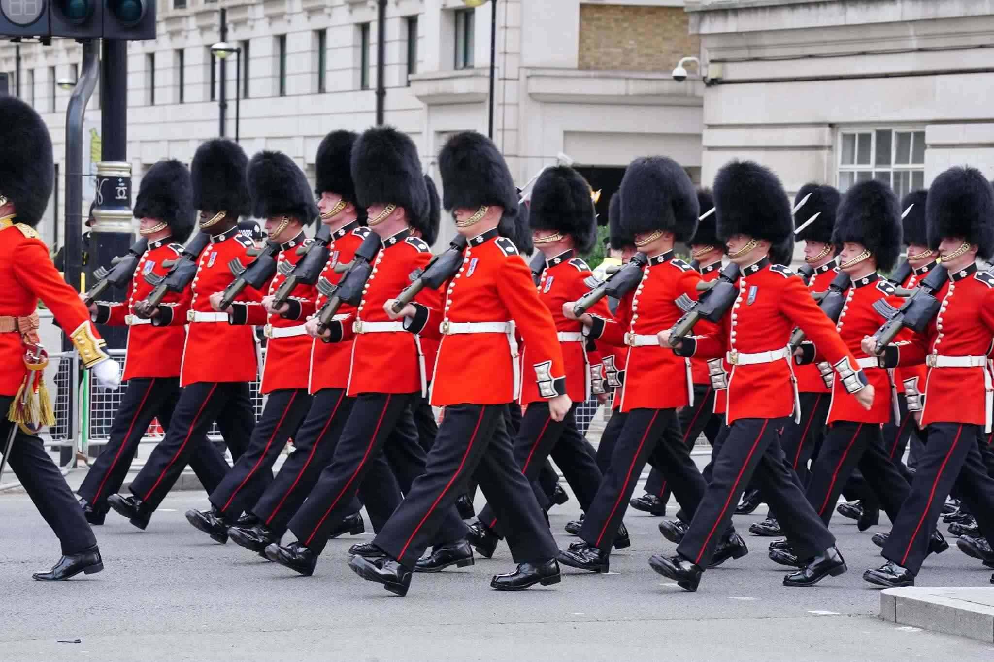 當(dāng)?shù)貢r(shí)間2023年5月6日,英國(guó)倫敦,皇家武裝部隊(duì)成員抵達(dá)倫敦,參加查爾斯三世加冕典禮。視覺(jué)中國(guó)